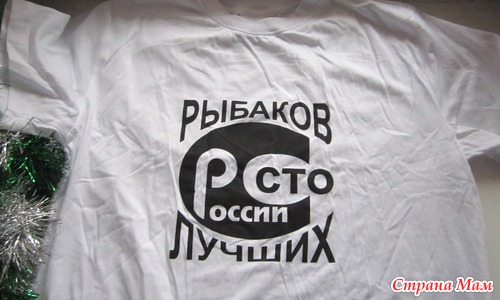 3. Мужу - футболку в подарок. Он у меня первоклассный рыбак, поэтому такая футболка его просто необходима, на мой взгляд. Прошу прощения, что пока не глаженная.