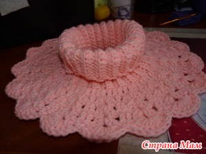 Я не знаю как называется такой способ соединения просто попробовала вязать вот так: накладывала конец вязания горизонтальный ряд с начальным рядом и в крайние петли вводила крючок, а снизу брала рабочую нить, вытаскивала петлю и провязывала ее и так же с каждой последующей петлей пока все не провязала. Затем не обрывая нити начала вязать столбики с накидом по образовавшемуся кругу -3 воздушные петли подъема, затем в следующую петлю 2 столбика с накидом и так до конца, а потом но схеме. Ну вот как-то так. А получившуюся высоту горлышка подвернула пополам и получился подворот.