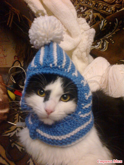 Первой была шапочка. Примеряла на своего кота))
