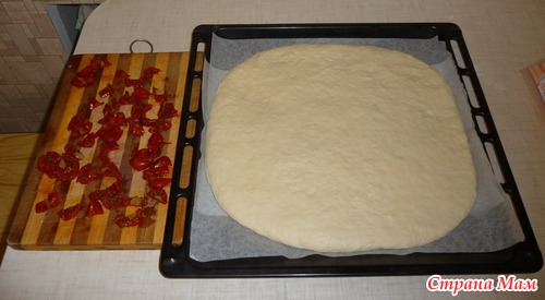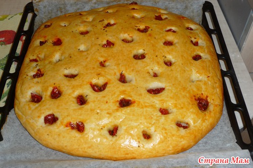 Фокачча на картофельном пюре с вялеными помидорами