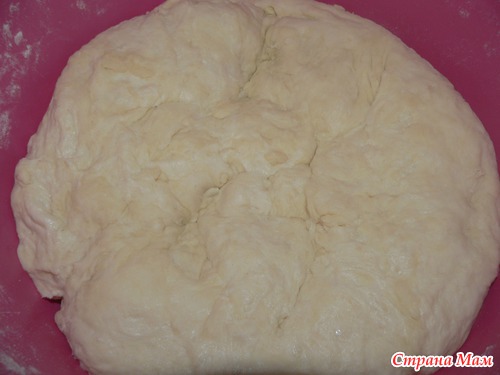 Добавляем 2 ч. л. соли, 15 стол. ложек растительного масла, 5-6 стаканов муки. вымешиваем мягкое тесто