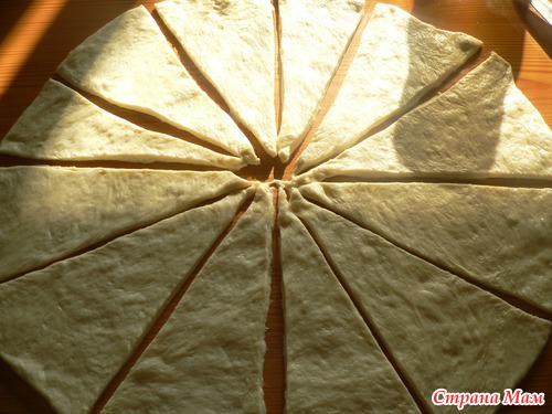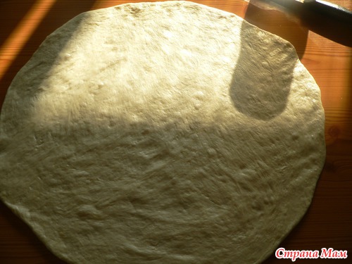 Делим на несколько частей (я поделила на 4), раскатываем каждую кругом,