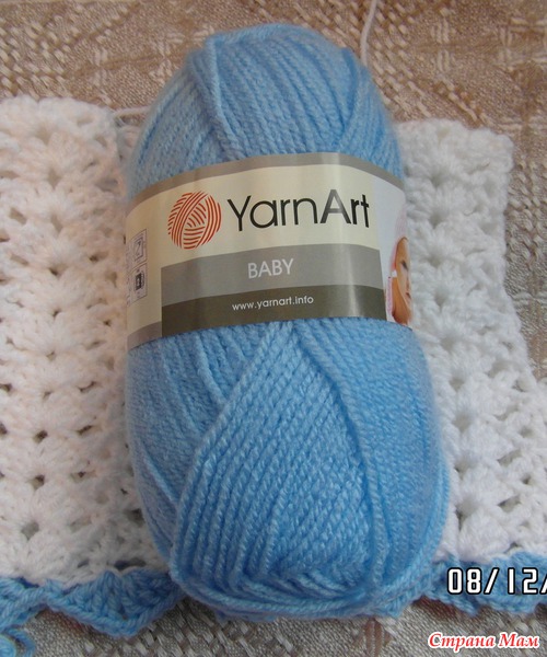 вязала YarnArt Baby. расход ниток белых - 1 моток не полный, голубых - немного больше одного моточка.