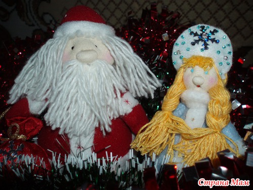 а вот и сами виновники, такие красивучие Дед Мороз со Снегурочкой, Леночка такая мастерица