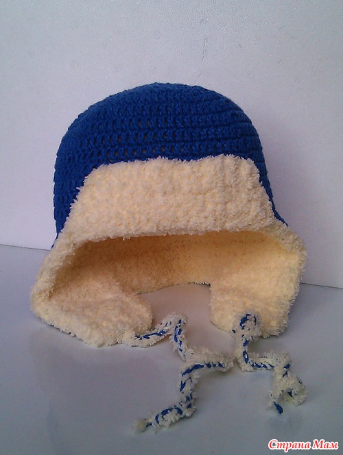 Шапочка ушанка на обхват головы 39-40 см связана из половины мотка lanoso puf и половины мотка в yarnart jeans крючком №3,5 и №3. Описание брала из нашего он-лайна: https://www.stranamam.ru/post/4198239/?page=2#com28889378