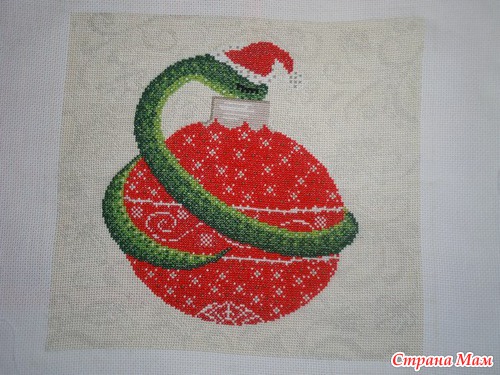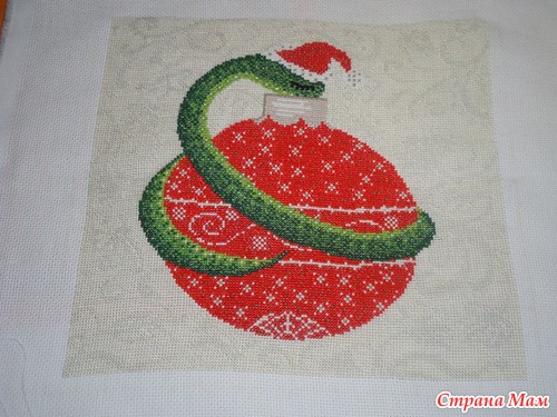 Отшили змею на шарике по моей схеме. Схему рисовала для бисера, в ней нет ни бэка, ни четвертькрестиков, ни смешанных цветов.