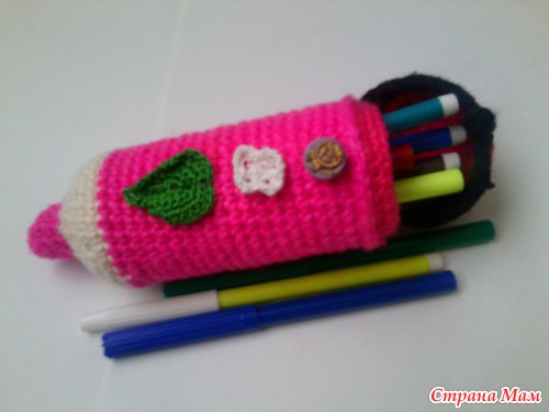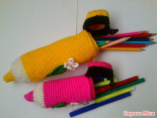 Сынуля все время карандашницы опрокидывает и все рассыпается и очень любит карандаши на улицу с собой брать, вот мы с ним и связали такие карандаши-пенальчики, теперь берет с собой даже в садик Читать полностью