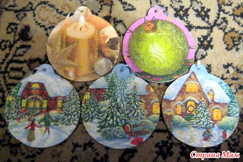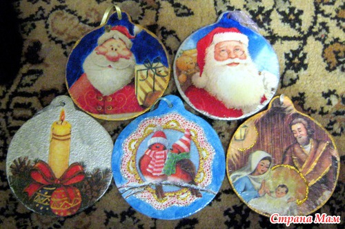 Тэги: декупаж, Новый год, шарики на елку, мдф