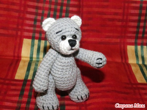 Мягкий медвежонок, полностью ручная работа, материалы - хлопок, бусины, синтепон, ростом 10.5 см