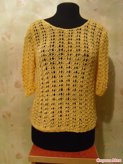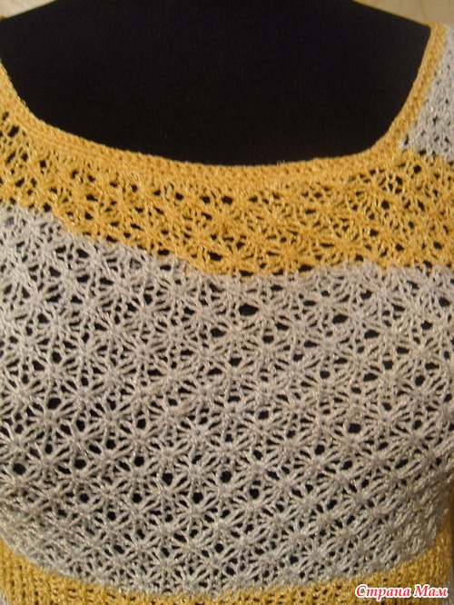 . Я обычно стараюсь в каждой новой работе использовать новый узор, так сказать для самосовершенствования. Обнаружила я повторение только после того, как достала свою блузку, ну и ладно.