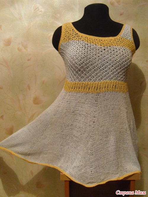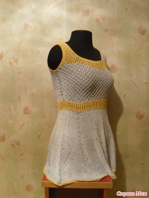 . Купились мотки золотого, голубого и бежевого цвета. Летом образовались вот такие вещи.