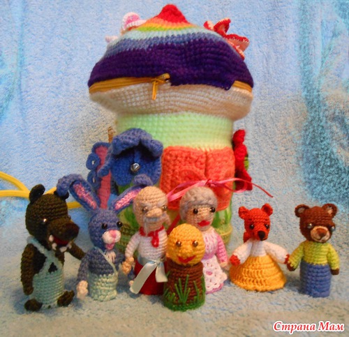 Я связала свой пальчиковый театр по картинкам Яны Горовой, здесь ее мастер-классы http://www.gorovayana.ru/category/master-klass/.