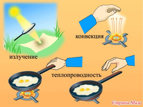 Теплота всегда распространяется из теплой области в холодную. Излучение, конвекция и теплопроводность - способы ее распространения.