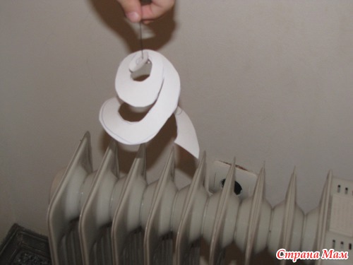 3) Подвешиваем спираль над батареей отопления или другим нагревательным прибором, наблюдаем за происходящим.