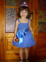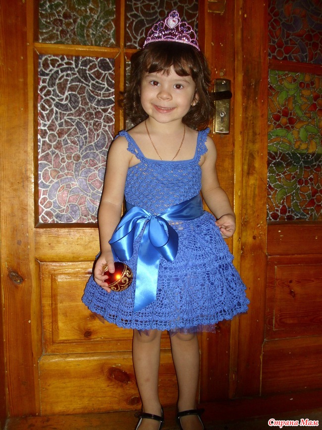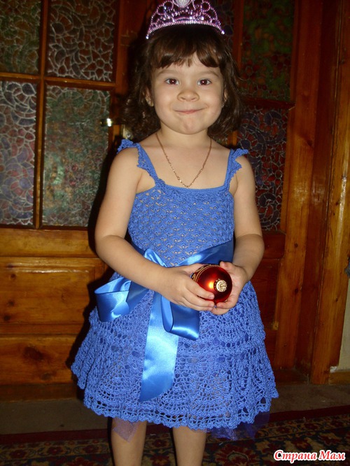 Связалось платьице на конкурс, планировалось одеть его с синим бантом на голове, но так как банта пока нет одели корону, возможно до начала конкурса будут другие фото