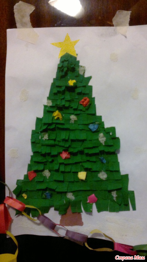 Делали елочку и гирлянду с фонариками