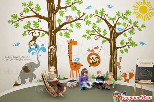 Ужасный и зеленый крокодил при помощи такого растомера станет лучшим другом. А листочки можно не только нарисовать, но и использовать ткань с подходящим рисунком А этой картинкой на стене каждый день можно придумывать разные истории. Читать полностью