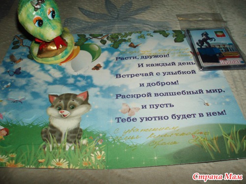 Замечательная открыточка с пожеланиями, магнитик и змеючка