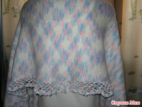 А я боком-боком мимо машины ходила, да и насмелилась. Попробовала связать некое подобие палантина. Получилось полотно, обвязала крючком.