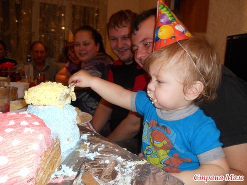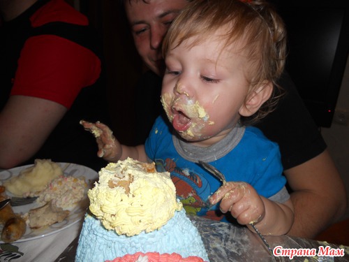 Отрезали детворе по куску, дали волю имениннику, наградив его ложкой и подвинув торт поближе для удобства