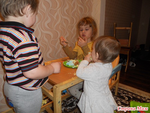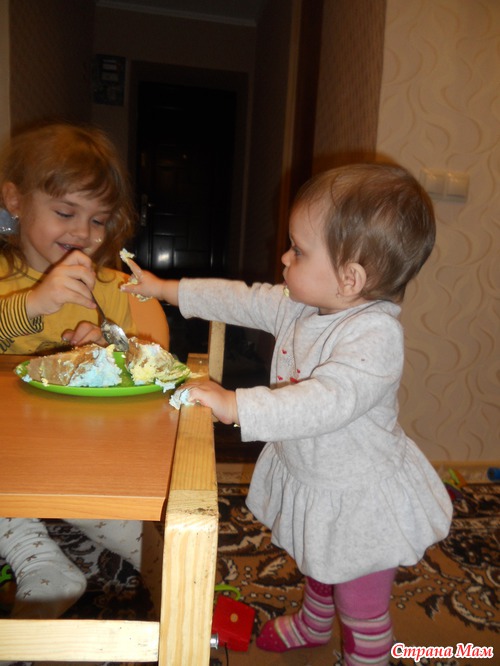 Какие вы молодцы, сами ложкой кушаете, а нам 11мес, мы еще не можем. А им разве можно тортик? Не рано? Я почему интересуюсь, через месяц у нас тоже будет годик, поэтому у меня и возникают такие вопросы.