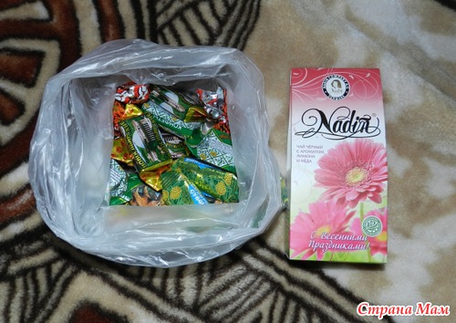 Там еще были мармеладки, но пока папа прятал свои шоколадки, ребенка быстро вытащила свой пакетик и начала требовать чтобы открыли. Потом сама вскрыла... зубами... Тут уж пришлось помочь и сладкое выдать =)