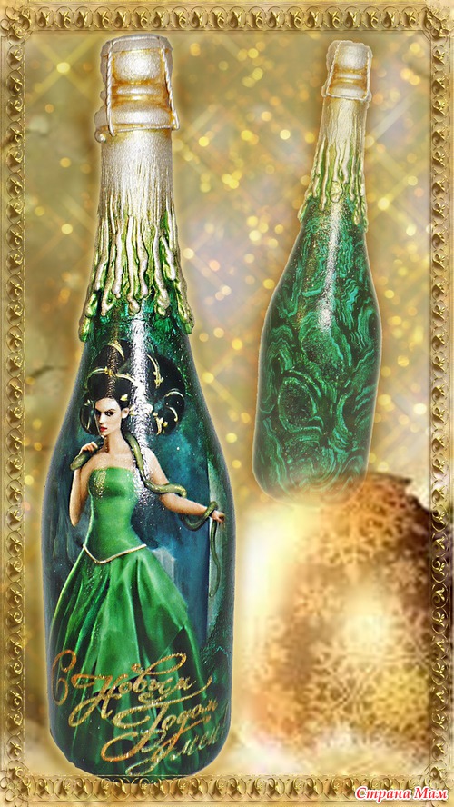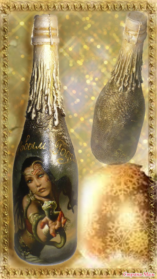 Продолжаю шампанить!!! НГ не за горами и народ начинает суетиться. Заказов просто валом. Не жалуюсь, но уже хочется отдохнуть. Вот навояла на днях ещё парочку бутылок в стиле фэнтази. В реальной жизни очень блестят, особенно вечером. Читать полностью