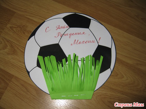 Для Пожеланий Имениннику сделала специальный альбом. Те же распечатанные мячи скрепила степлером.