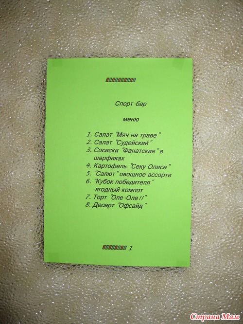 Меню в нашем Спорт-баре было, разумеется, тоже футбольное!