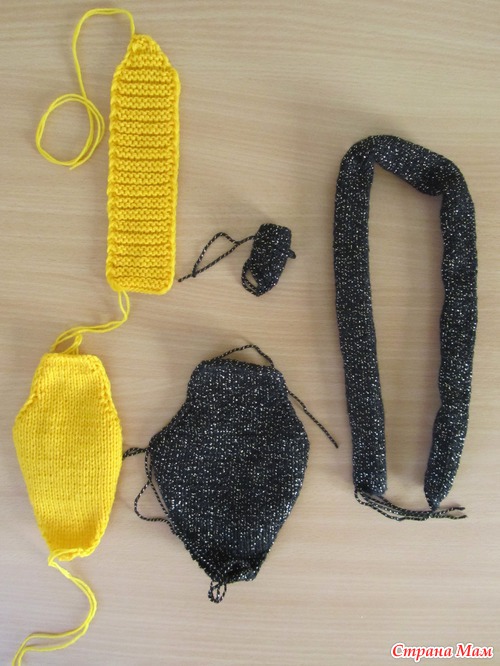 пряжа ( 97 % акрил, 3% полиэстер) черного цвета — 40г. Пряжа ( 50 % шерсть, 50 % акрил) желтого цвета — около 20г. Отрезок желтой тесьмы длиной около 30см. 2 маленькие белые пуговки и 2 черные бусинки для глаз. Отрезок красной нити длиной около 8 см. для языка. Мягкая проволока для изготовления каркаса кобры и капюшона кобры — около 80 см. для туловища и 50 см. для капюшона. Синтепон, вата для набивки. Набор из 5 спиц для кругового вязания № 3. Вязальный крючок.