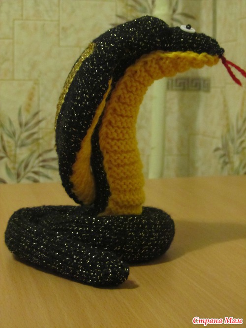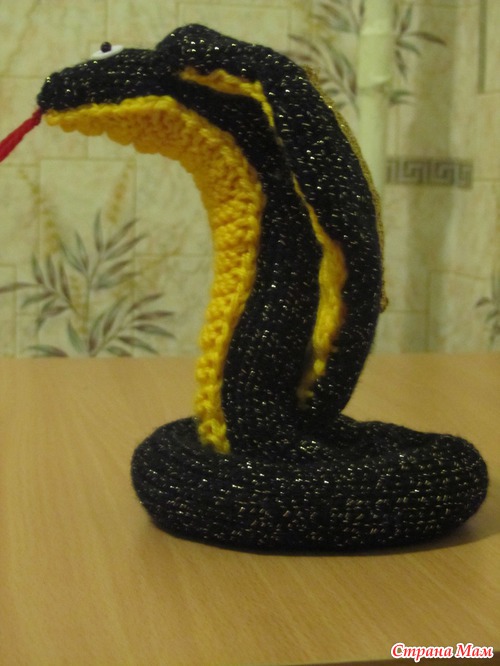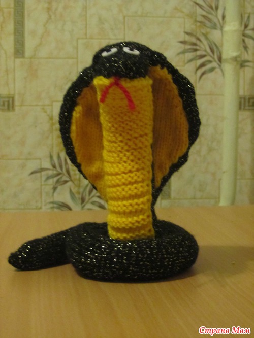 У сына в школе конкурс. Надо сделать поделочки на тему Нового года:открытку и змею своими руками. Мне сын говорит: "Мама, свяжи мне змею. Ты же вяжешь." Я подумала и решила связать кобру. Решено - сделано. И решили мы ее назвать Добряной, чтобы наступающий год был добрым. А теперь несколько фоток с участием нашей Добряны. Небольшой МК, как я ее делала. А также ссылочка для вдохновения: http://vsevyajem.ru/%D0%B2%D1%8F%D0%B7%D0%B0%D0%BD%D0%B0%D1%8F-%D0%B7%D0%BC%D0%B5%D1%8F/