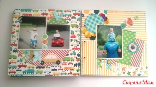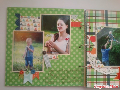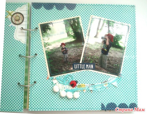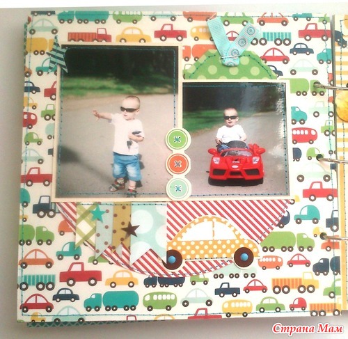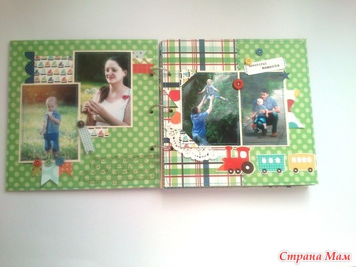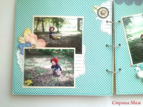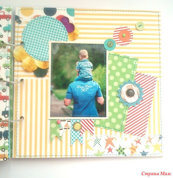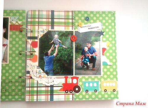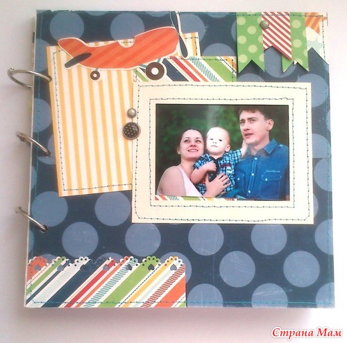 И в комплект ему сделался блокнот по примеру "блокнотов для мам" Кати http://kittykat-scrappost.blogspot.com/. Размер блокнота А5, имеет 4 разделителя, на обратной стороне которых могут быть фото