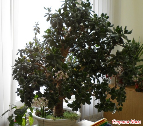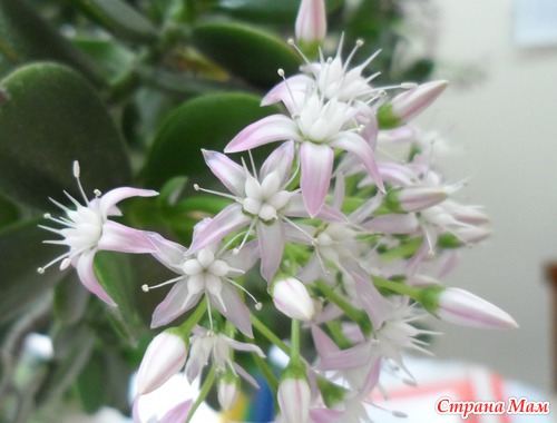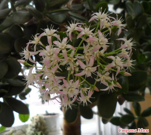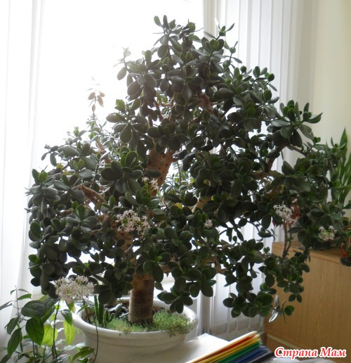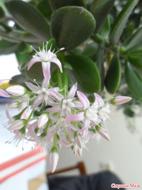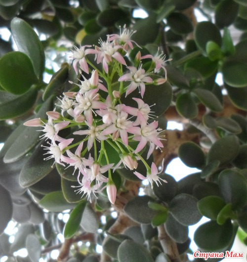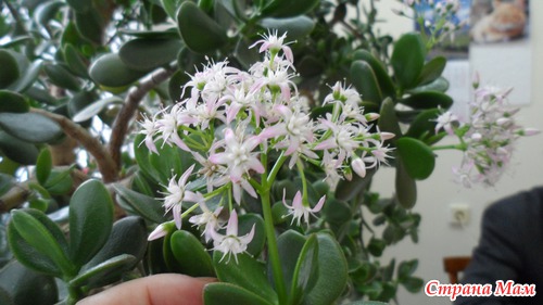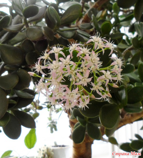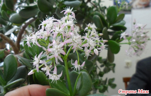 У нас на кафедре 27 лет растет толстянка. Последние лет 8 она радует нас своим цветением! Кисти цветов в диаметре около 15 см, мало того, аромат непередаваем, очень нежный! Читать полностью