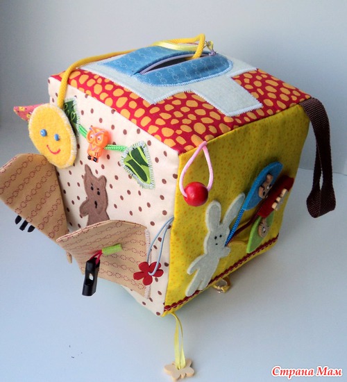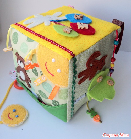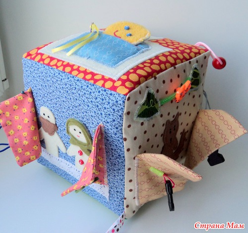 1. Колобок в печке, заслонка на молнии. Колобок на шнурочке - гуляет по всему кубику.