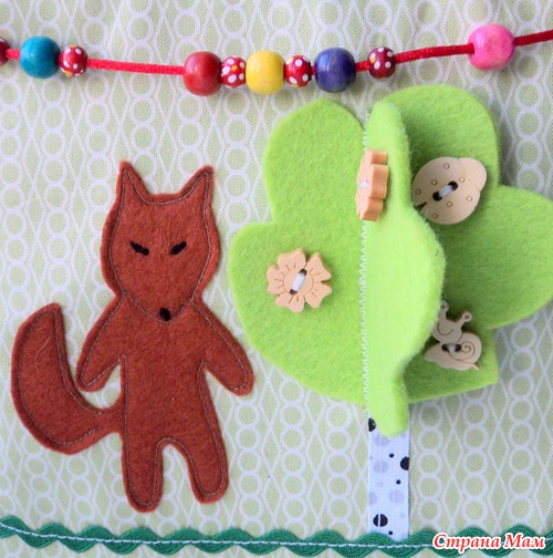 5. Мишка на полянке с солнышком и травкой-кармашком на липучке, внутри растут ягодки.