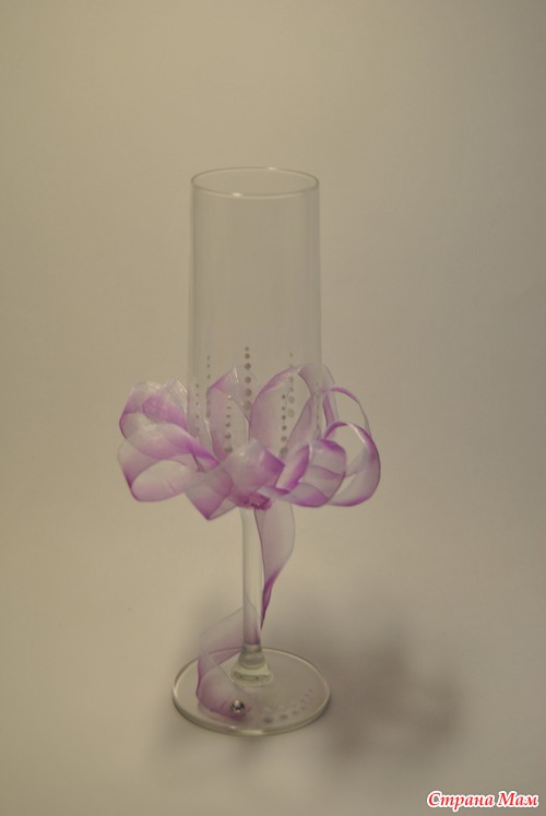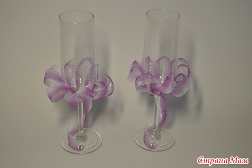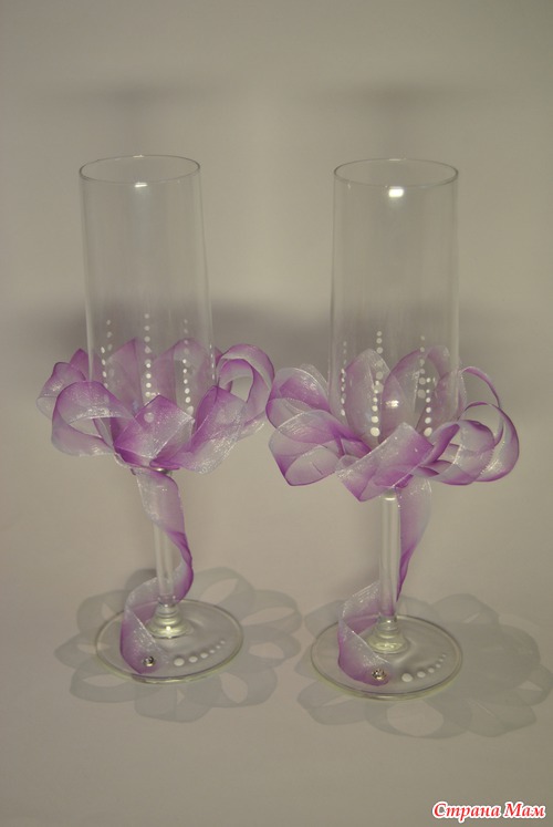 Вот, сделала бокалы на свадьбу. Хочется приклеить стразики маленькие, но куда? А может не стоит? Муж предлагает инициалы, а мне не нравится. Сердечки? не в тему. Может так все и оставить. Подскажите, пожалуйста.