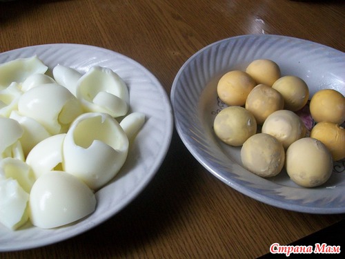 -отваренные яйца разделить на белки и желтки