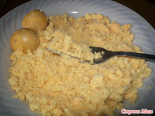 -желтки подавить вилкой
