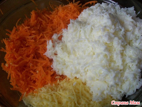 -во второй посуде сыр, белки и морковь