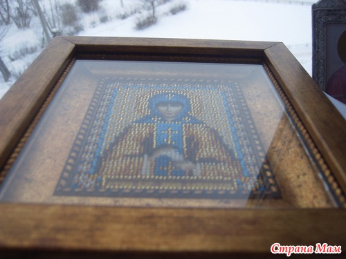 Это моя первая икона бисером! Увидела как то оформленную уже икону, только другая святая была и решила попробовать!
