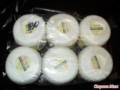 Ниточки. Ушло почти три моточка. А вот хлопка не помню, кажется 2.