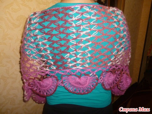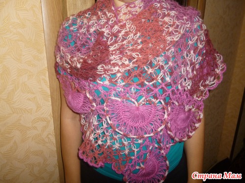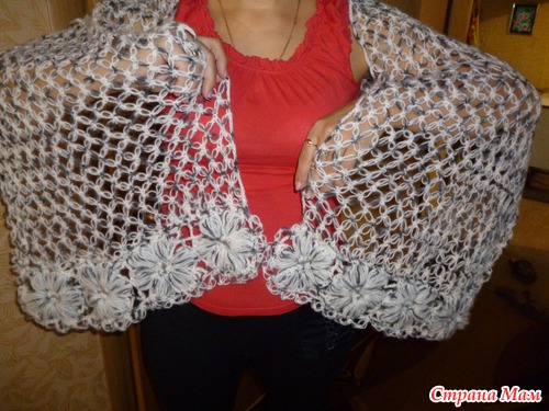 Вот такой получился палантин для кумы к дню ее рождения, ( обвязку решила сделать на вилке) Авот этот я связала ранее для себя. Это первый мой опыт в вязании саломоновыми петлями Читать полностью