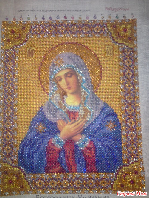 а икона действительно красива. Я уже две иконы вышила этой фирмы и с бисером проблем не было, даже много осталось. Теперь думаю может картину какую-нибудь попробовать из него вышить