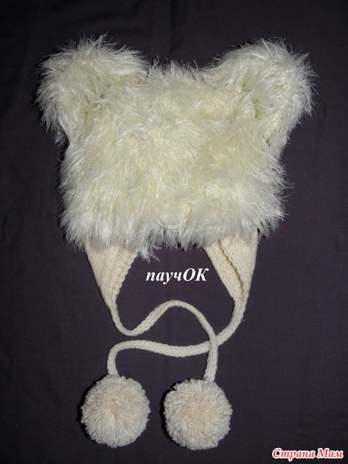Ушки пока делала - намучилась, не стоят и все тут (и регилин ввязывала - он вываливается, так как "дырявая" вязка" и брала спицы намного меньше по размеру).