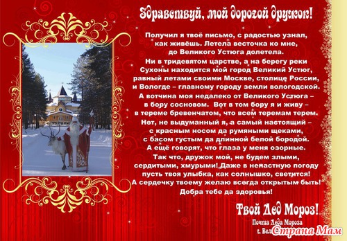 По электронной почте мы писали дуду морозу письмо! и вот сегодня получили ответ хоть и простая открыточка зато приятно)))