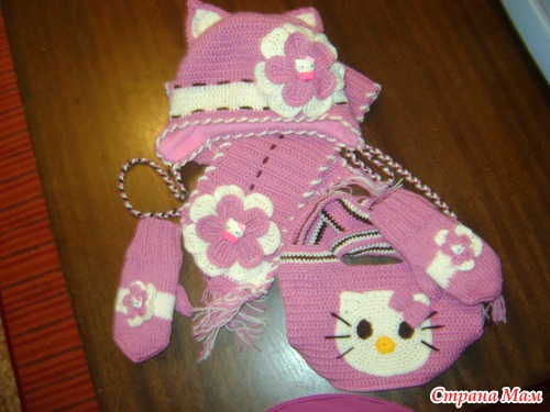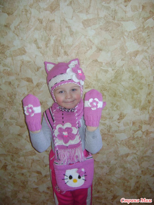 Спасибо! Шарфик вязала столбиком с накидом 25 петель разворачивалась и так до конца. А сумочка сначала вязала овал, а потом как шапку столбики с накидом до нужной высоты, ручки воздушные петли которые в последствии обвязывала. У меня схем к сжалению нет я вяжу по картинке. Если будут вопросы пишите я объясню.