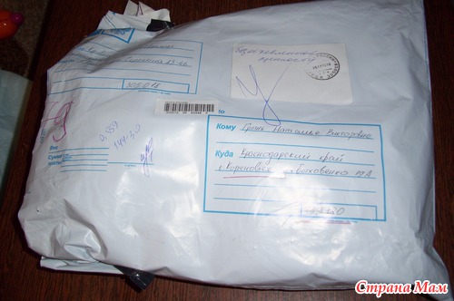 Вот она и ждала нас пока мы не приехали домой. Побежав на почту и отстояв большущую очередь я наконец забрала свое сокровище и побежала домой в полном нетерпении. И вот она моя посылочка!