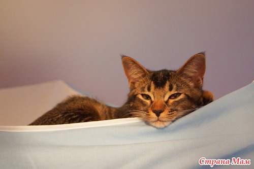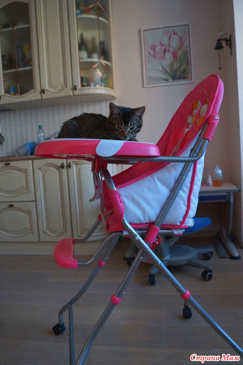 Моя хозяйка, ну это та, что имеет великую честь накладывать мне корм и убирать за мной горшок, считает, что очень хорошо пристроился!