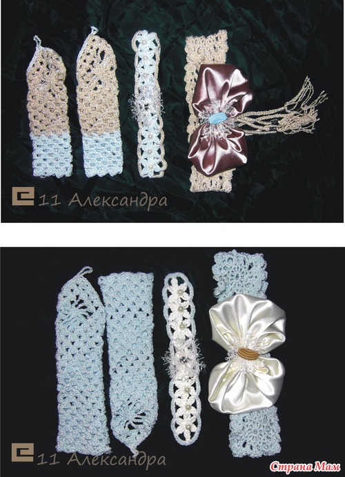 спасибо Всем за отзывы! А вот наши красивости:Перчатки, повязка на голову, пояс с бантиком, корона ( для фото, пойдем на утренник в повязках). Вот схемки: