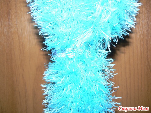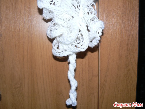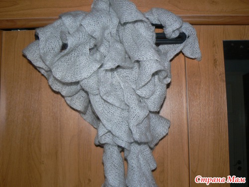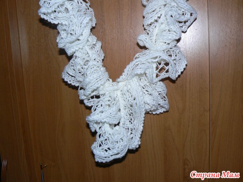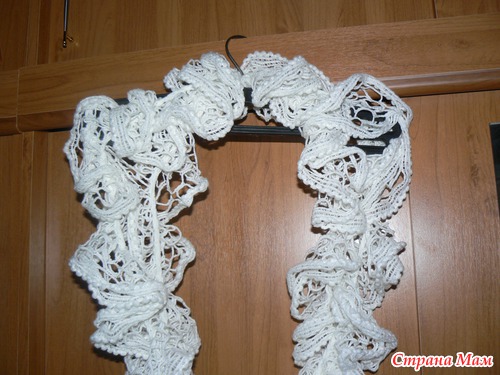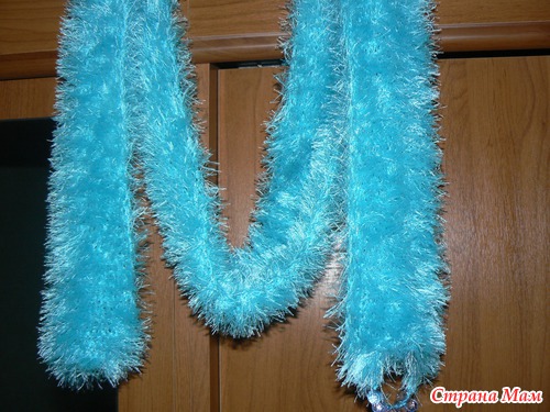 Связано в два сложения крючком, в конце получается симпатичная петелька, чтобы можно было красиво укладывать шарфик...